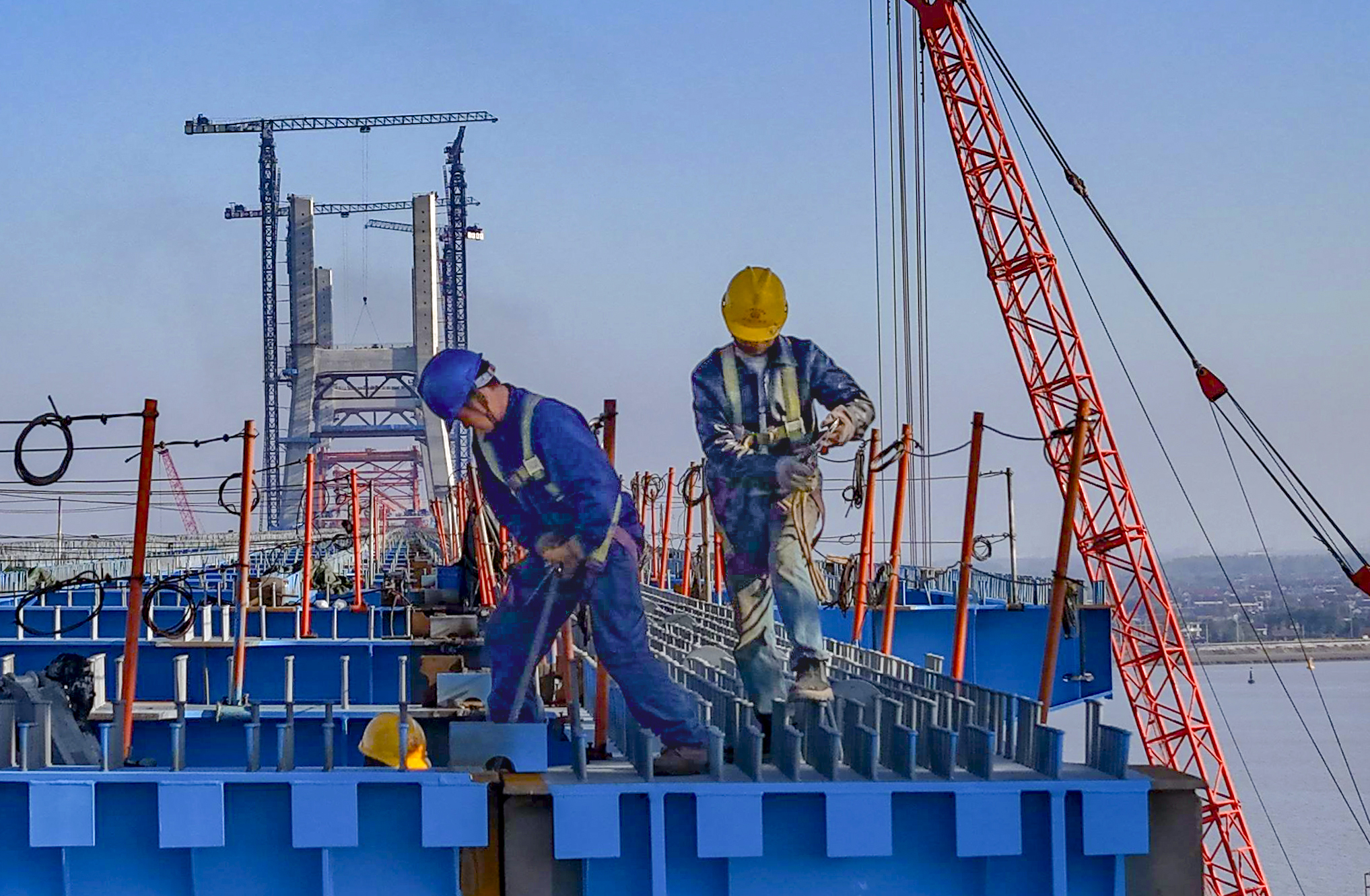 10月31日,一根长21.2米、高1.922米、重34.61吨,编号为A87公路横梁杆件吊装组拼就位,标志着由中铁大桥局承建的新建上海至南京至合肥高速铁路沪宁段站前Ⅴ标崇启公铁长江大桥主桥非通航孔桥钢梁公路横梁吊装组拼全部完成。