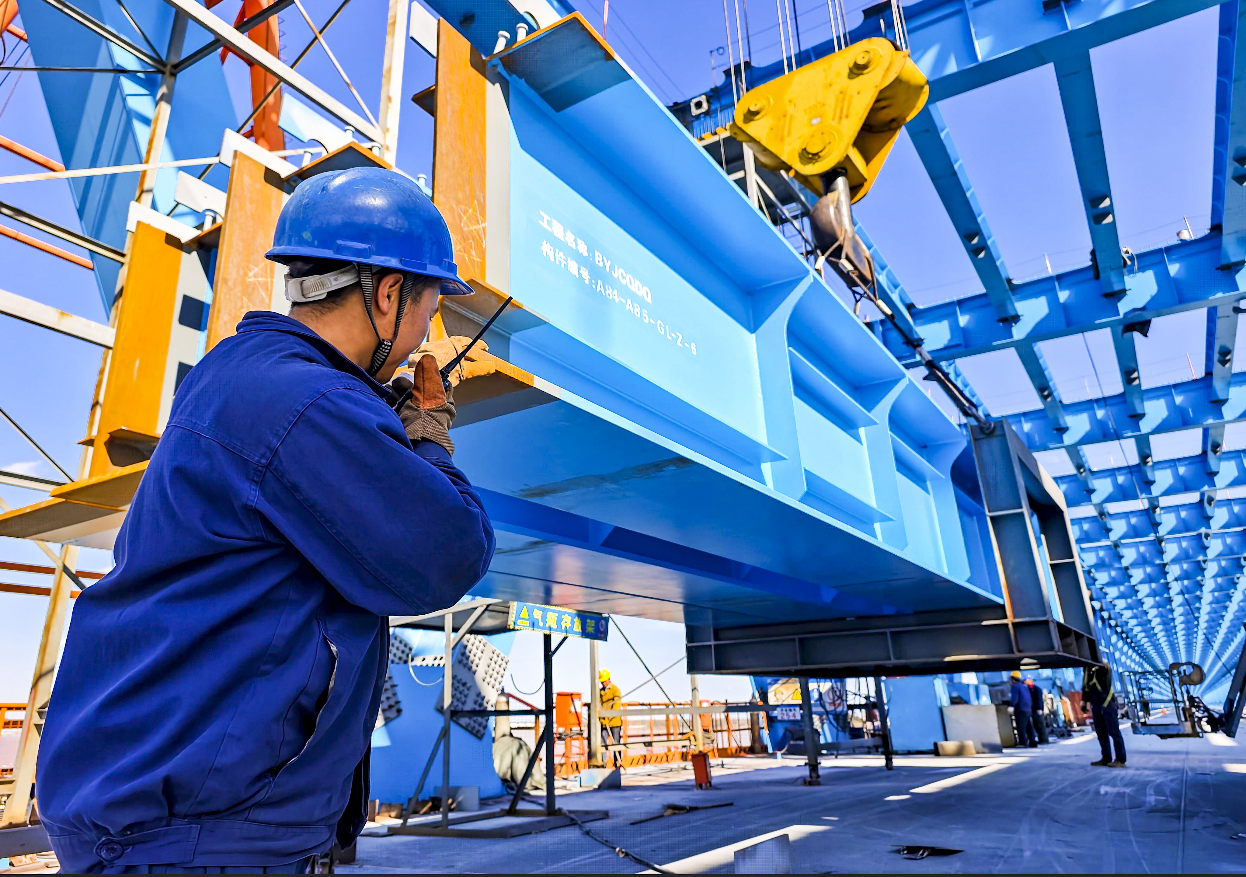 崇启公铁长江大桥主桥全长2197.4米,设16个桥墩,北侧6个桥墩为主通航孔,南侧10个桥墩为非通航孔。非通航孔桥为11孔一联双层等高度连续钢桁结合梁,孔跨布置为99.2+9×112+98.2=1205.4米,主梁采用双主桁三角桁布置,标准节间距14米,全桥共86个节间。受非通航孔桥区域水深限制,钢梁采用“岸侧散拼架设+多点同步顶推”的施工方案,共13个顶推轮次,总顶推距离1267米,总顶推重量3.89万吨,位于国内同类桥梁顶推距离第一,重量第二。