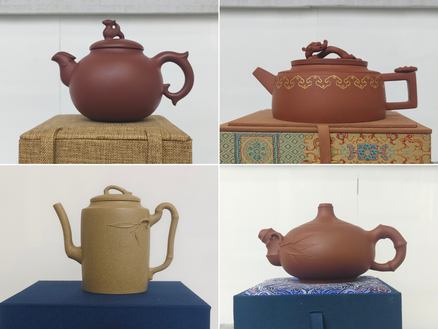 展厅内,紫砂作品《建党百年》套组大气庄重,红色的礼盒与精致的茶具相得益彰,既具实用价值,又饱含对党的深情礼赞;《楚汉风云》壶造型独特,壶盖上的瑞兽灵动传神,仿佛将那段波澜壮阔的历史浓缩于方寸之间;曾荣获2021艺博银奖的《纵有千古横有八荒》以逼真的螃蟹造型,展现出紫砂艺术惟妙惟肖的表现力。此外,《玉璧提梁》《凤首壶》《曲水雅约壶》等佳作,或古朴典雅,或灵动精巧。值得一提的是,该展览还通过文字与图片,系统梳理了紫砂陶瓷的历史渊源、材质特点——从紫砂泥料的种类与特性,到制壶工艺的演变发展,为观众搭建起了解紫砂文化的桥梁,让大家在欣赏艺术佳作之余,更能深入领略紫砂陶瓷所承载的深厚文化底蕴。展览至本月底结束。