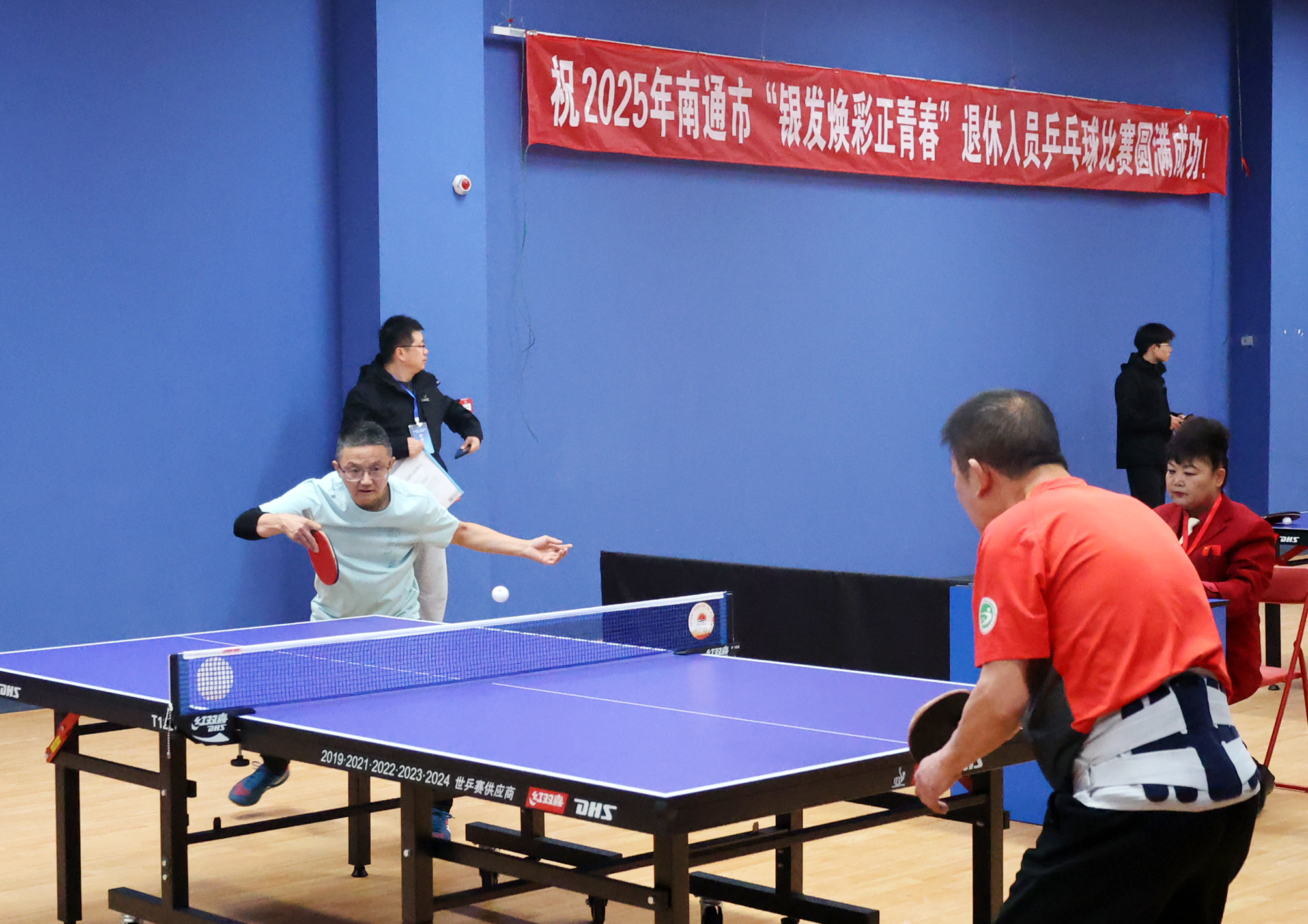 银发焕彩正青春,快攻弧圈勇争胜。11月13日,2025年南通市退休人员乒乓球比赛在三可乒乓球运动中心举行,9支代表队派出近50名乒乓球爱好者参赛。