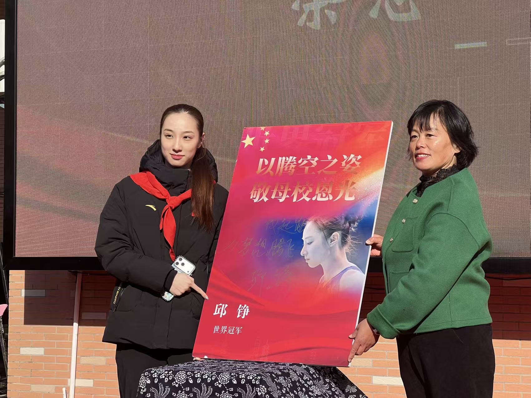 接下来的互动环节中,孩子们踊跃提问,“如何平衡运动与学习”“职业生涯中有哪些惊险与快乐的事”等问题接连抛出,邱铮耐心逐一解答,用自身经历为孩子们答疑解惑,并为母校题词“从母校起跳,为梦想腾飞”,笔墨间满含对母校的感恩与对学子的期许。
