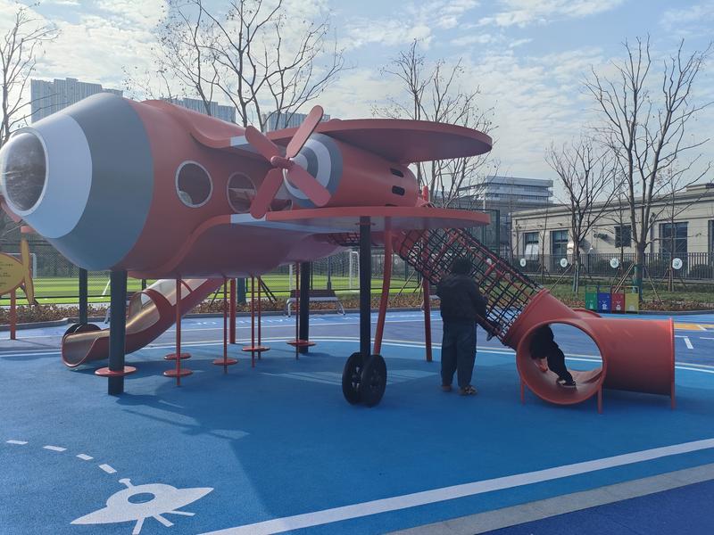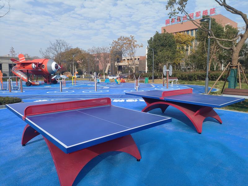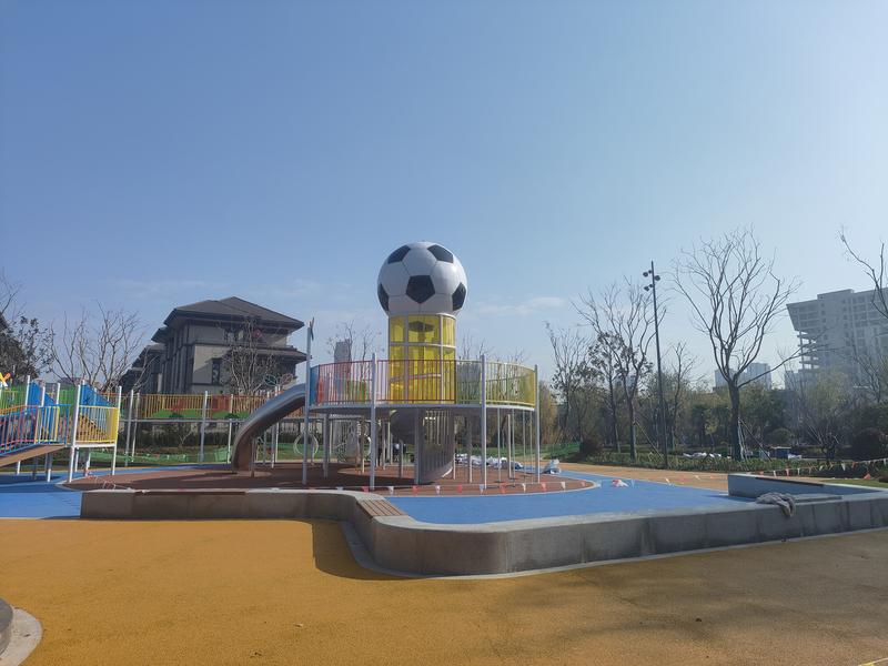 该体育公园占地面积约8591平方米,同样精心规划了多功能运动区:4片5人制足球场、2片乒乓球场以及成人健身设施及儿童游乐场。“随着‘苏超’的火爆,足球运动在市民中掀起热潮,我们的足球场内,最多可以容纳40人同时踢球,还特别在儿童游乐场的游戏连廊处打造了一只超大足球,以充满童趣的方式激发市民的运动热情。”陈超介绍。