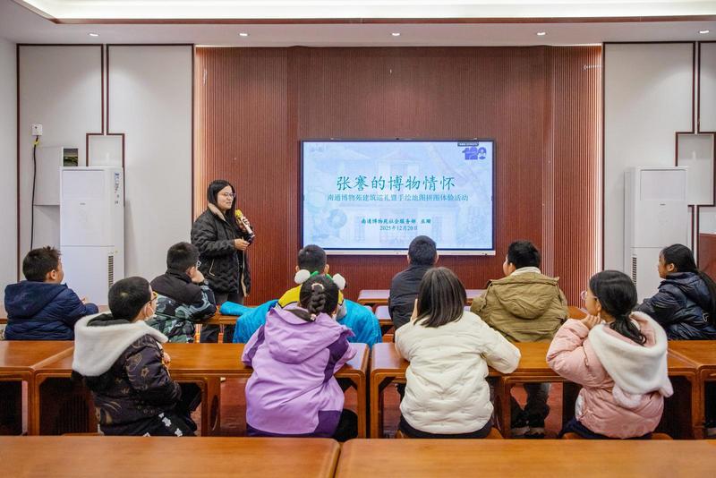 活动中,社教专员带领孩子们回顾了南通博物苑创办人张謇在家乡兴办实业、教育与社会公益事业的卓越贡献,讲述其“癸卯东游”、上书朝廷并创办中国第一座公共博物馆的历史背景,重点阐释了张謇提出的“建筑之制”在内的“博物六端”理念。