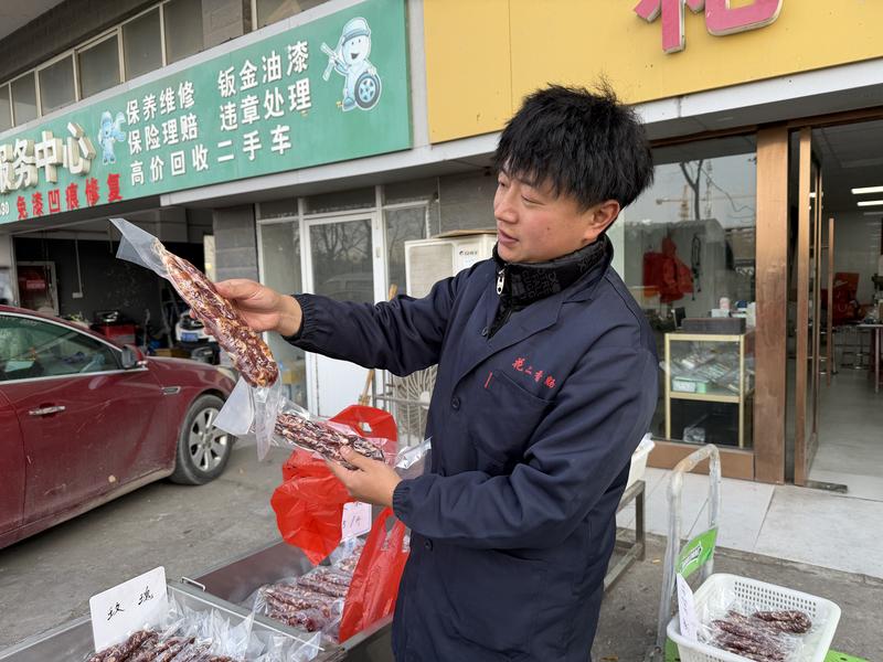 记者表明来意,花晶金笑了,“快过年了,这些‘网红香肠’确实卖得太火,我以为你们也是来采购的呢!”