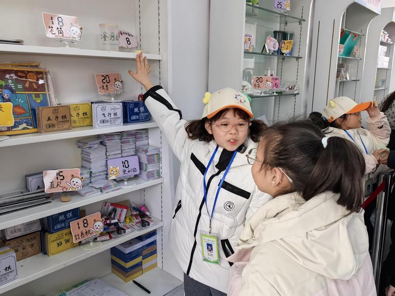 星光超市内人头攒动,货品丰富多样,涵盖了学习用品、文创周边、益智玩具、生活用品、特色纪念币等六大类,每件商品都标注了清晰的星光币价格和相应介绍。其中,航天特色乐高积木、定制植物罐头等货品,还巧妙贴合了学校“航天馆”“魅力食光”等特色课程,让兑换环节也成为特色育人的延伸。