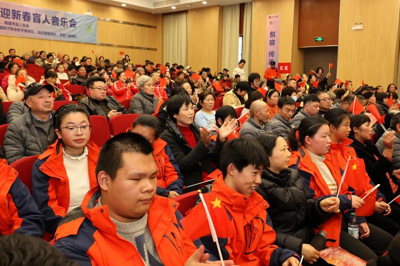 12月30日,迎新年盲人音乐会在南通大学启秀校区温情上演。本次活动由中国狮子联会如意服务队、南通市盲人协会联合主办,盲人演员们带来笛子独奏、独唱、古筝演奏、诗歌朗诵、电吹管演奏等10余个精彩节目,以昂扬向上的姿态展现自强不息、乐观进取的精神风貌,喜迎新年到来。