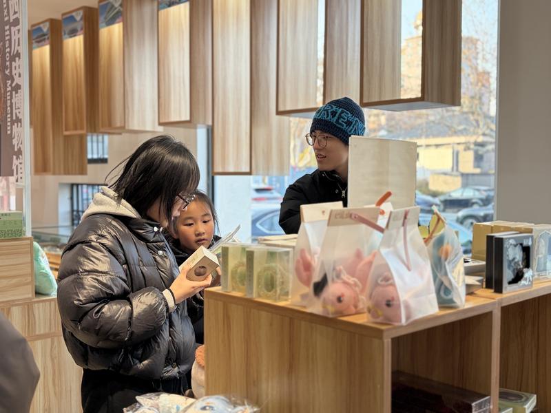 1月3日,元旦假期的最后一天,南通博物苑南门文创商店人气持续火爆。河南博物院的“珐琅镶玉葫芦”冰箱贴、苏州博物馆的“吴王夫差宝剑”毛绒款、殷墟博物馆的甲骨文徽章盲盒……来自全国120余家知名博物馆的宝藏文创产品在此集结,让市民游客得以一站式领略各大博物馆的独特魅力,亲身感受传统文化在创新创造中迸发的活力。