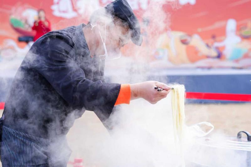 上午11时,随着一口传统大锅锅盖掀起,“一面之缘”开锅仪式正式启动。热气腾腾的第一锅特色面由2025年度“通州湾的一面”当选单位现场烹制,瞬间点燃了现场气氛。紧接着,主办方发布了由本地排名前十餐饮商家联合推出的五款“冬季风味菜单”,涵盖海鲜、骨汤等多种特色面食,为市民提供了冬日暖心美食指南。活动现场还设置“一面百味”品尝区,5个摊位前始终排着长队,试吃特色面。
