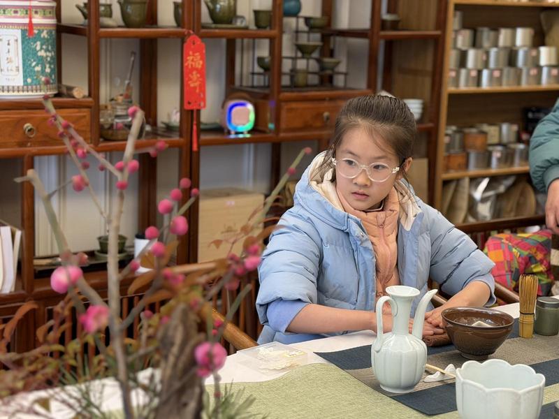 “点好的茶不仅可以饮用,还能以清水为笔,在茶沫上作画。”毛老师适时讲解,“宋代点茶文化兴盛,不仅是生活方式,更是精神寄托。宋人将茶艺推向极致,创造了这种独特的文化艺术形式。”在老师的带领下,小记者们齐声诵读“饮茶十德”:以茶散郁气、以茶驱睡意、以茶养生气、以茶除病气……