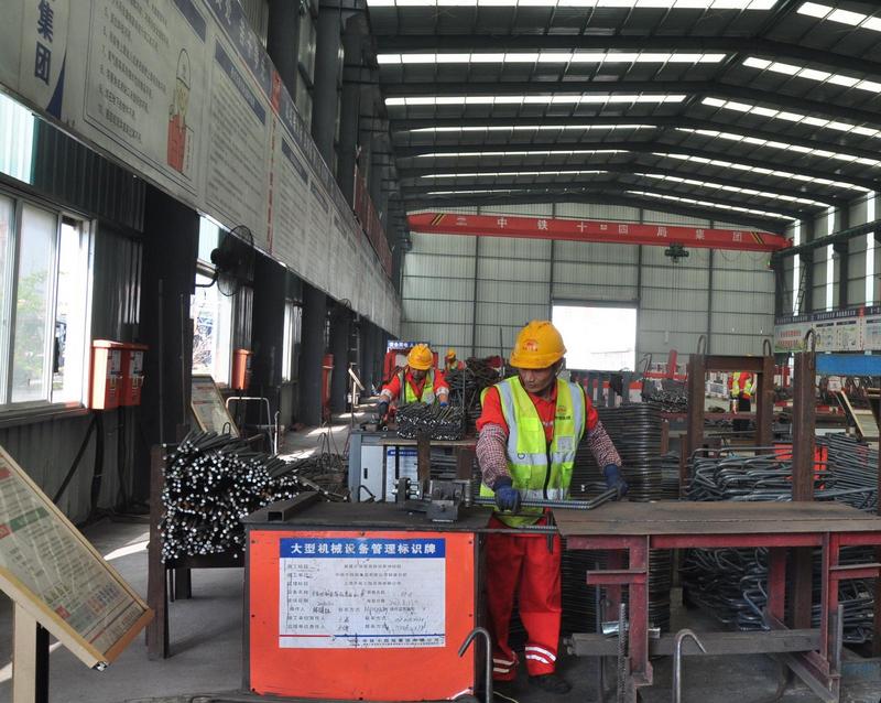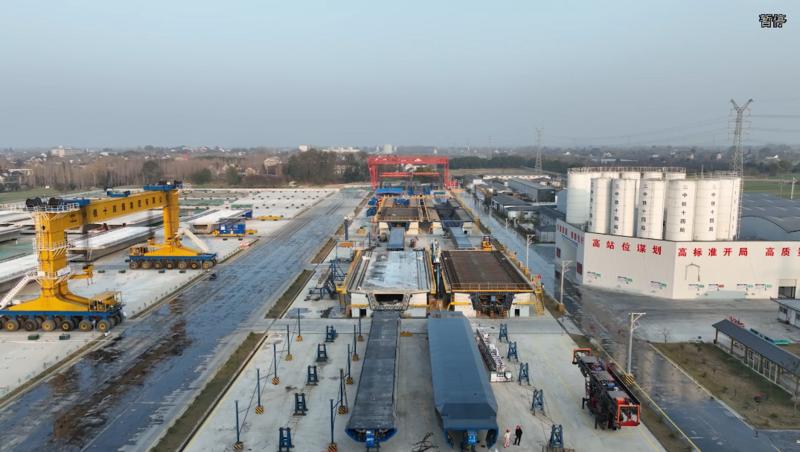 自2022年10月进场以来,参建人员克服梁型复杂、新老梁图变更、天气潮湿高温等诸多困难,以打造沪渝蓉高铁沪宁段示范点为目标,现场设置6套钢筋绑扎胎架,10个制梁台座,67个存梁台座、2个提梁台座,建造了智能调度中心,引进了数控钢筋加工生产线、全自动定位网片焊接机、智能设备外模全自动打磨喷涂系统等先进工装设备。