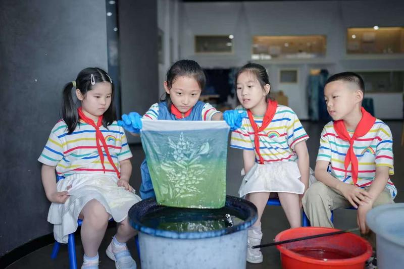 展览的成功,让宋如意直言“惊喜超出预期”。“孩子们的作品或许在技艺水平上不如专业传承人,但非常真实鲜活。他们用自己的方式,表达了对蓝印花布的热爱。”她认为,“更难得的是,孩子们通过亲手种植、实验、创作,了解了蓝印花布背后的文化内涵,培养了耐心、团结协作、抗挫力等品质。”
