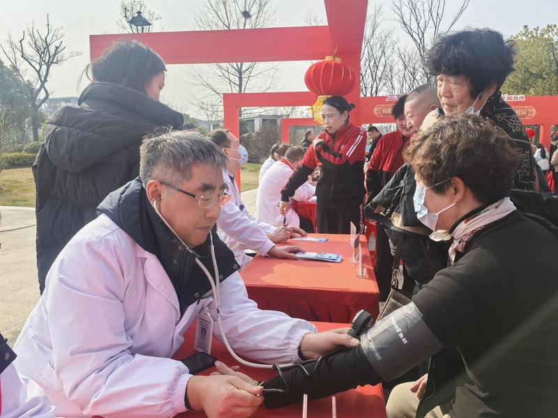 市卫健委的义诊区前,围满了前来咨询的群众,通大附院、市肿瘤医院的专家们细心为群众量血压、诊病情,耐心解答健康疑问。“身体一直有些小毛病,平时去医院排队麻烦,今天专家就在家门口,不仅给我看了病,还教了我日常调理的方法,太方便了!”57岁的刘平拿着专家开的健康建议,连连道谢。跳舞、握手、倒立……来自南通科技馆的两只机器狗吸引了一众目光,一旁戴上AR眼镜的孩子们不时发出惊叹声,感受科技的魅力。非遗展示区的彩灯、剪纸、糖画摊位前,老手艺人指尖翻飞,一张张红纸变成栩栩如生的生肖图案,一勺勺麦芽糖熬出晶莹的糖画,孩子们举着糖画,甜在嘴里、乐在心里。
