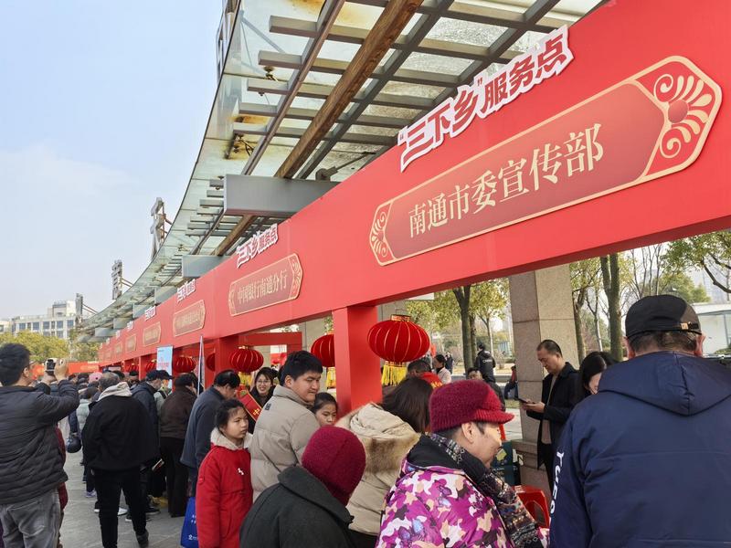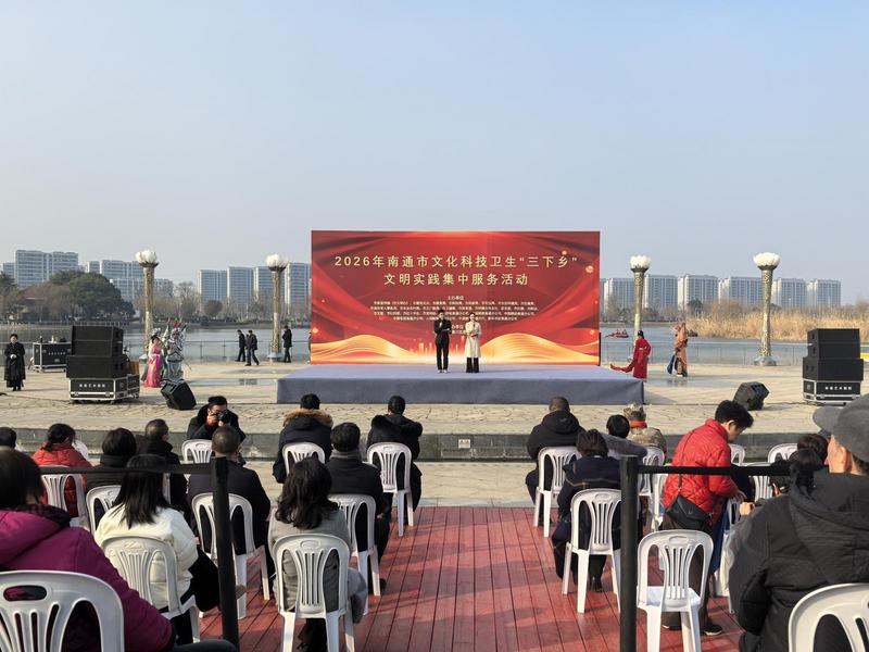 发布时间:2026-02-12 编辑:王婷 来源:视觉南通网2月11日,南方小年,乍暖还寒天的阳光洒在湖面上,升腾起淡淡的暖,崇川区天生港镇街道白龙湖公园内早已是热闹一片。各色摊位映红了张张笑脸,2026年南通市文化科技卫生“三下乡”文明实践集中服务活动在此启幕。这是南通开展“三下乡”活动的第三十个年头。当天下午,理论宣讲声声入耳、服务市集人头攒动、文艺演出掌声阵阵,在白龙湖畔绘出一幅党群同心、共迎新春的乡村美好画卷。