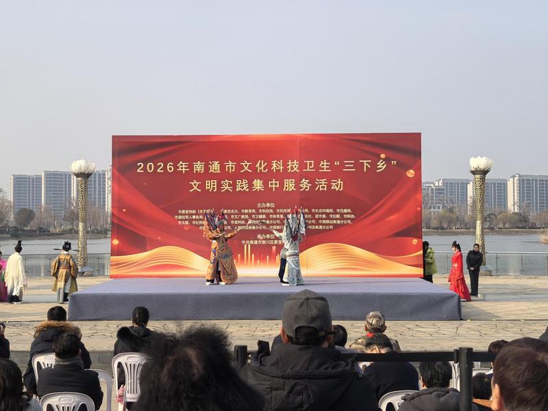 伴随着铿锵的锣鼓声,“三下乡”专场文艺演出正式开演,这也是“茉莉花开·艺通江海”文艺直通车行动2026年全市国有文艺院团“贺新春文化走亲”活动的首场演出。戏韵《盛世欢腾》拉开演出序幕,演员们身着艳丽的戏服,一招一式刚劲有力,瞬间点燃现场气氛。随后,相声、戏曲联唱、情景剧等节目轮番登场,用诙谐幽默的语言讲述乡村振兴的新变化,在如皋杖头木偶戏中传递文明新乡风,一个个兼具乡土气息与时代风采的节目,赢得现场掌声不绝。“热闹又精彩,这就是我们身边的‘春晚’呀!”市民崔菊看得津津有味,不时拍手叫好。整台演出紧扣时代主题、扎根基层生活,用群众喜闻乐见的艺术形式,为基层群众送上了一份丰盛的“文化年礼”。