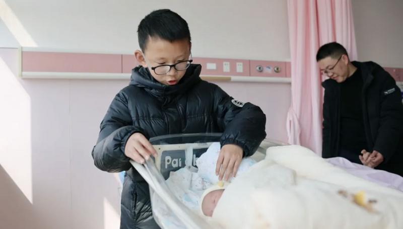 对于11岁的哥哥凌轩瀚来说,妹妹的到来,让他瞬间有了“大哥哥”的担当感,他趴在妹妹的婴儿推车边,端详着这个小小软软的新成员,眼神里满是新奇与宠爱,他边抚摸妹妹的襁褓边轻声说道,“我的妹妹好漂亮呀!以后我的零食全部都给你吃。”