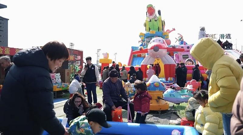 驱车前往吕四港镇仙渔小镇,咸鲜的海风裹挟着浓浓年味扑面而来。这里的新春,是独属于江海的鲜味与热闹。广场旁的游乐区,成了孩子们的欢乐天地。彩色充气城堡里,小身影追逐嬉闹,清脆的笑声与阵阵海浪声交织在一起;旋转木马缓缓转动,家长们纷纷举起手机,定格孩子们灿烂的笑脸。套圈、打气球、捞小鱼等摊位前排起长队,摊主热情招呼,此起彼伏的喝彩声与欢笑声,将节日氛围一次次推向高潮。