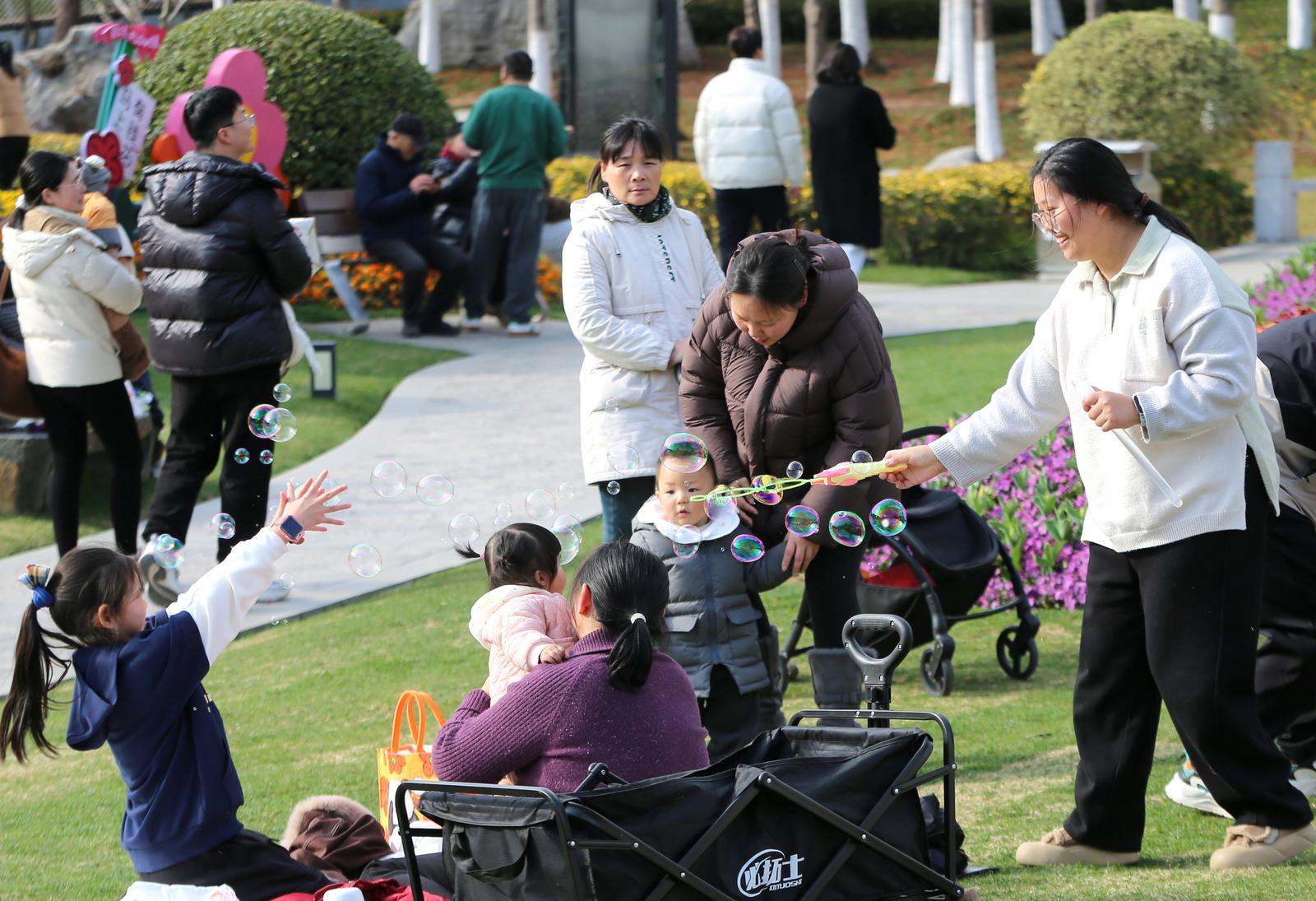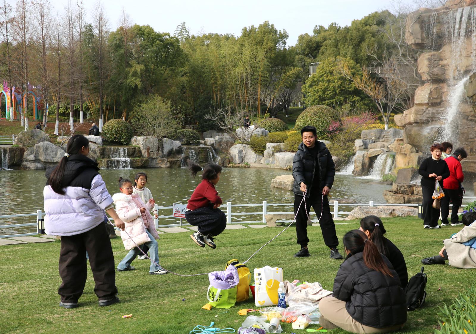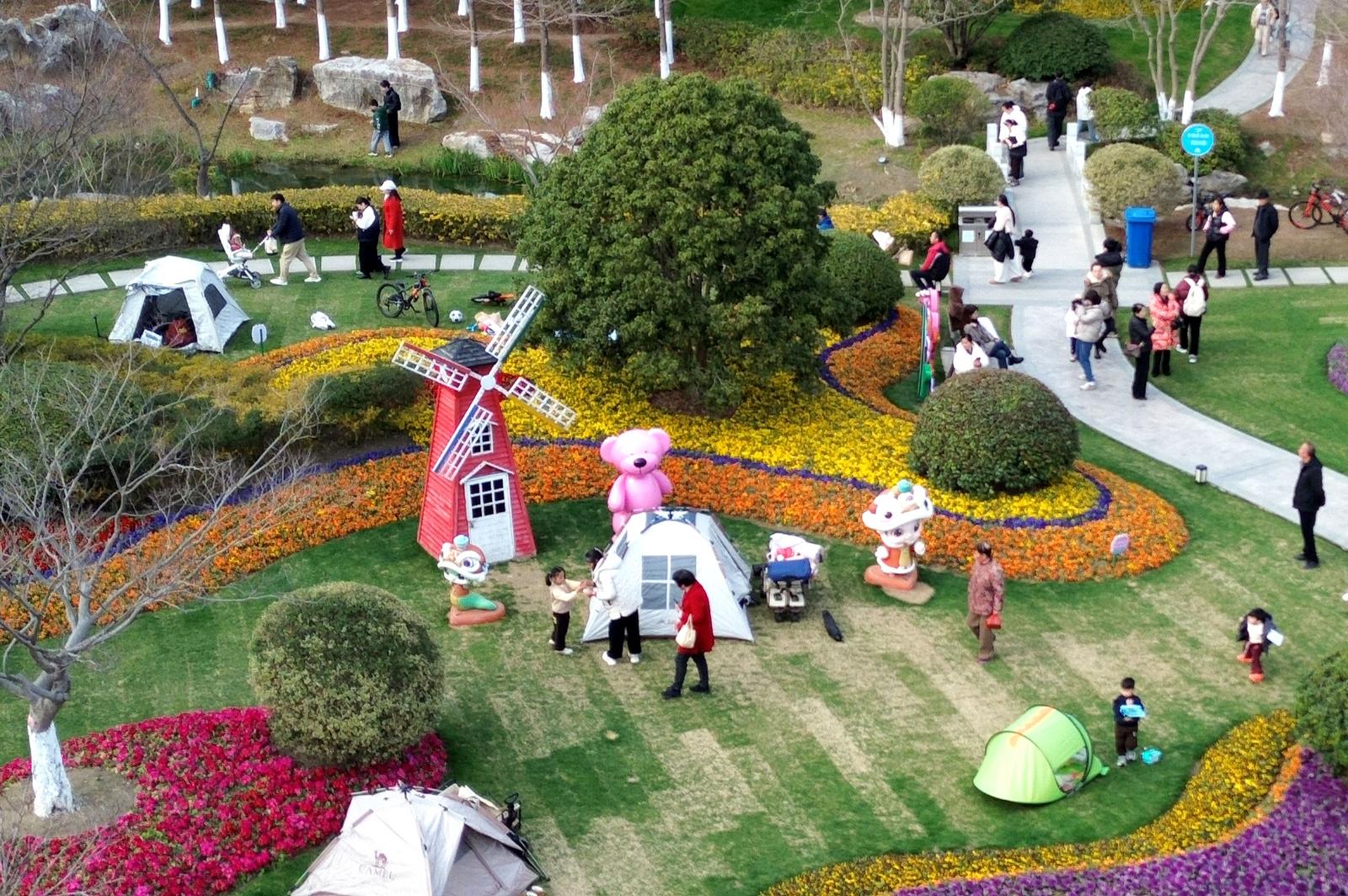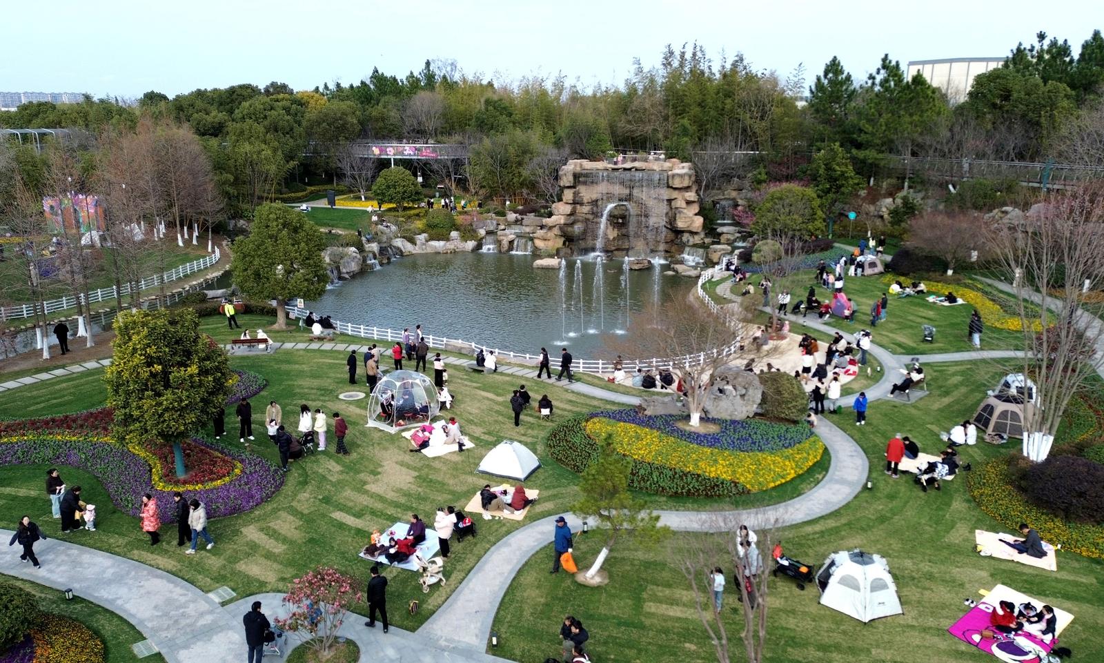 3月8日,不少市民、游客来到紫琅花谷踏青露营。他们搭帐篷、赏春花、沐春风,在城市生态绿地中拥抱自然,以轻松休闲的方式欢度节日,感受通城春日的生机与活力。