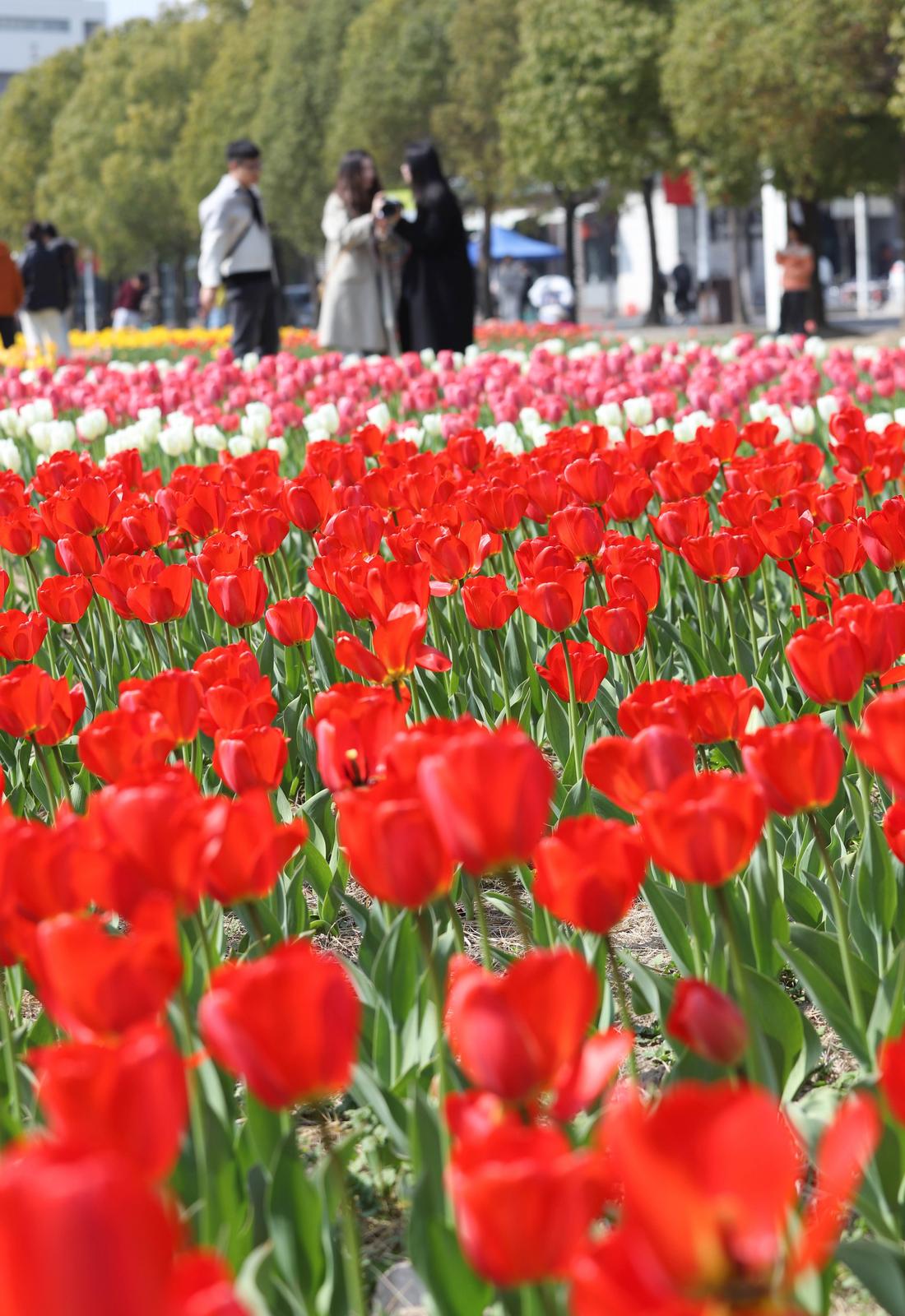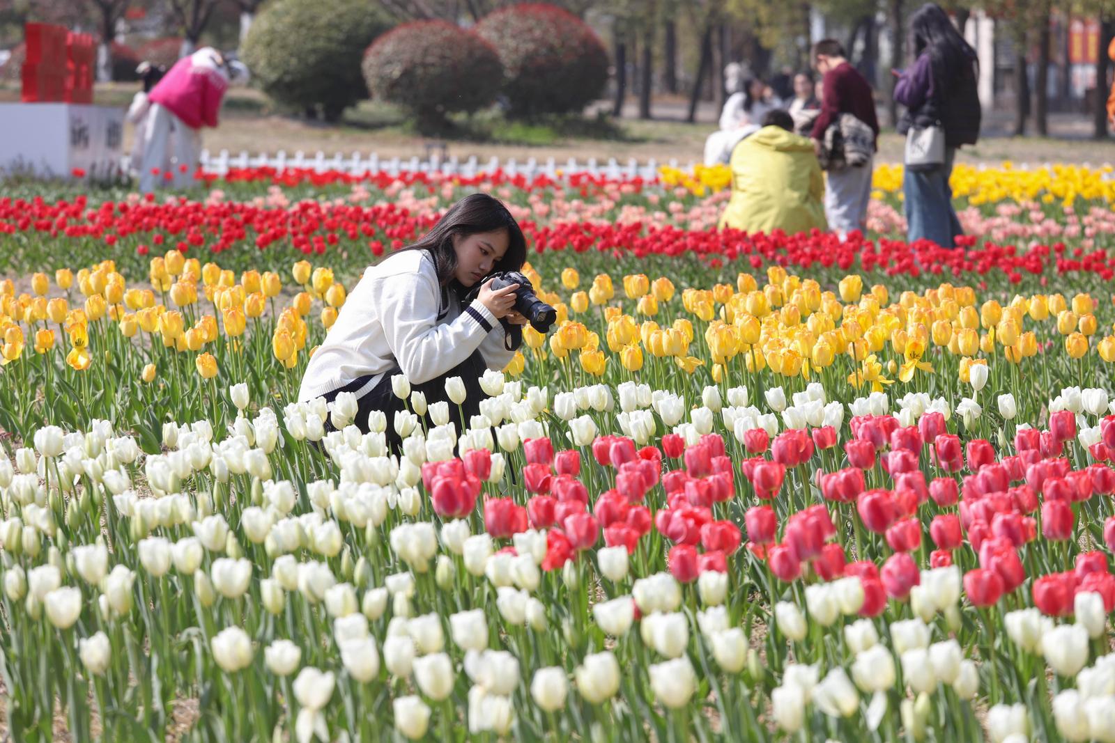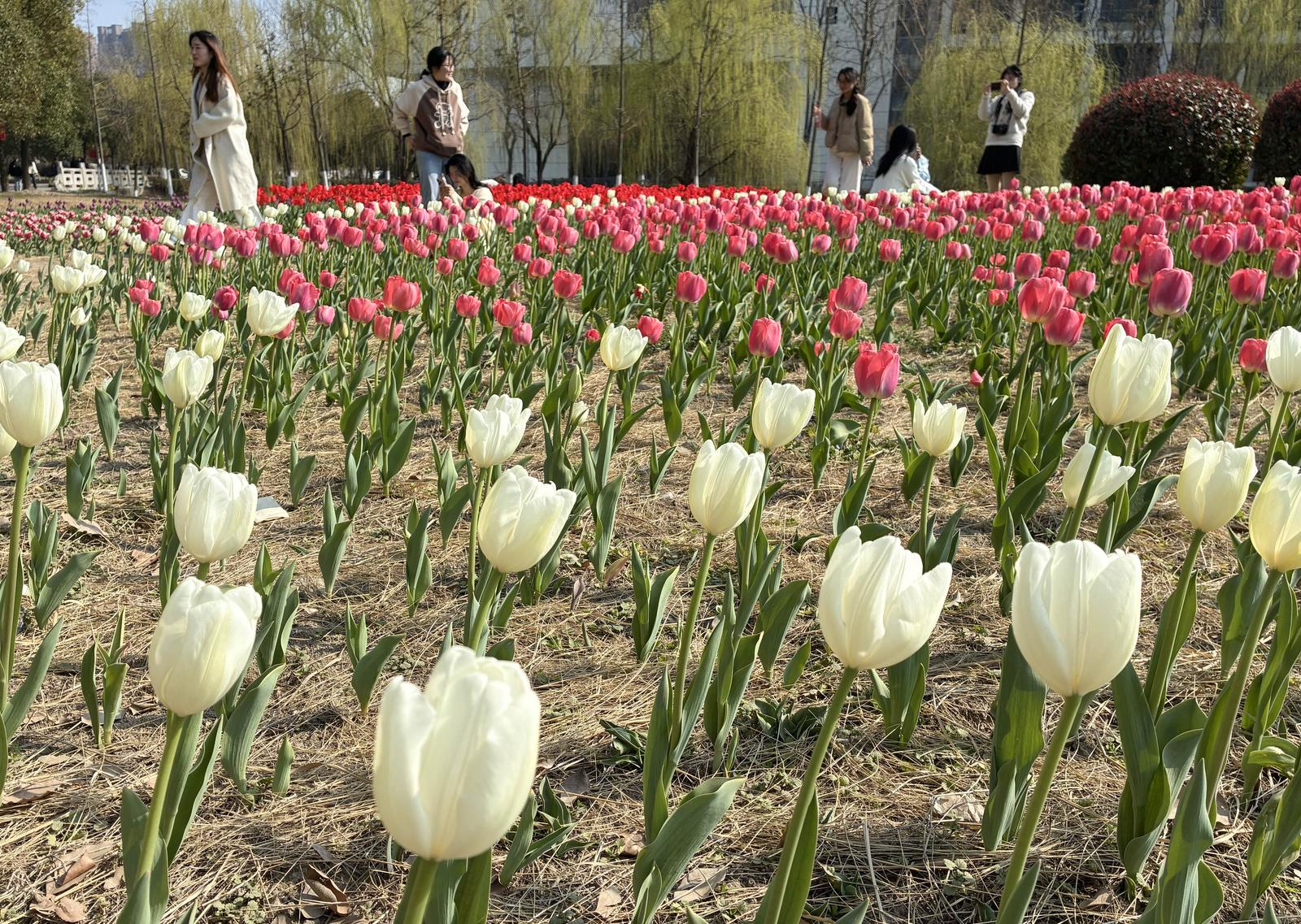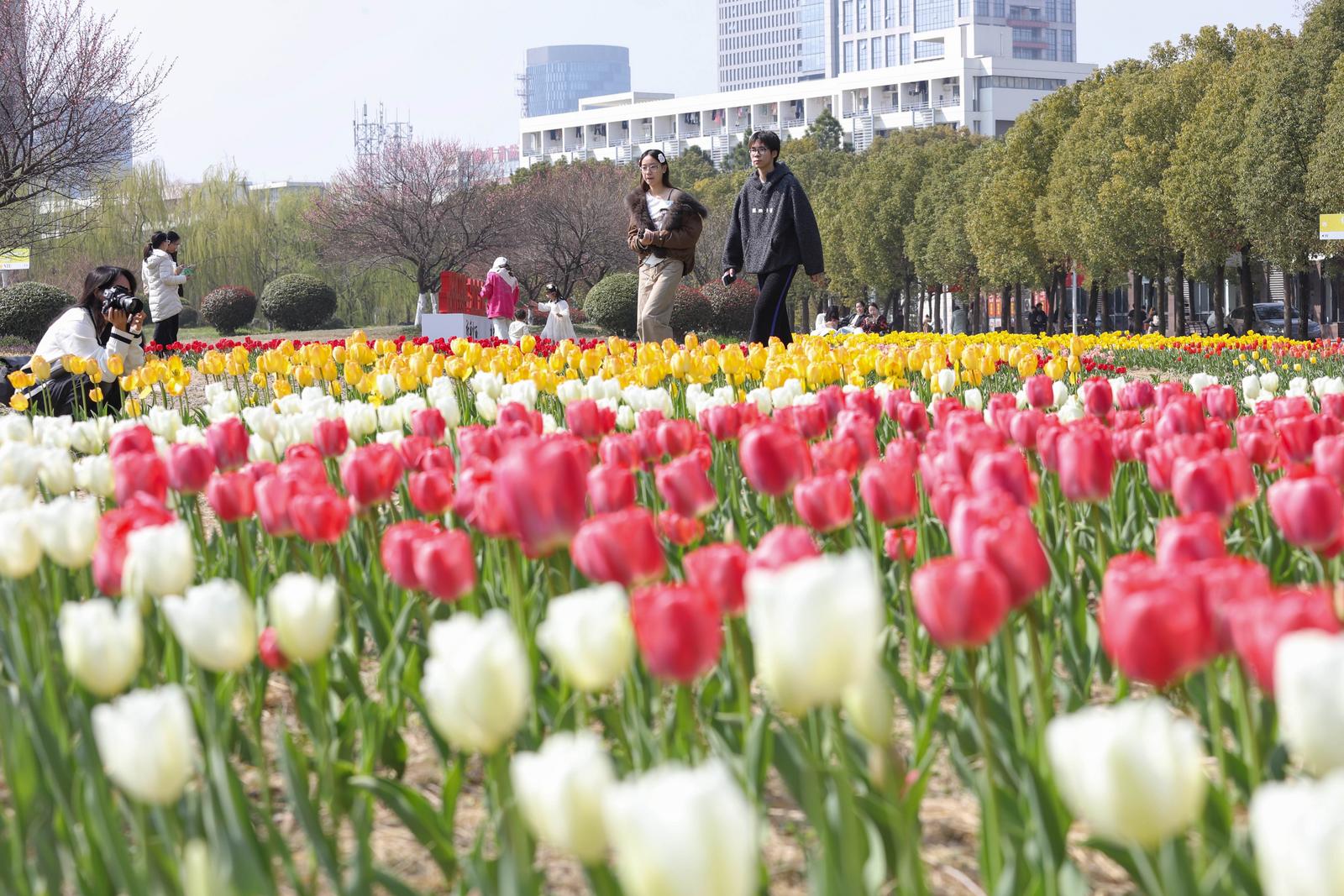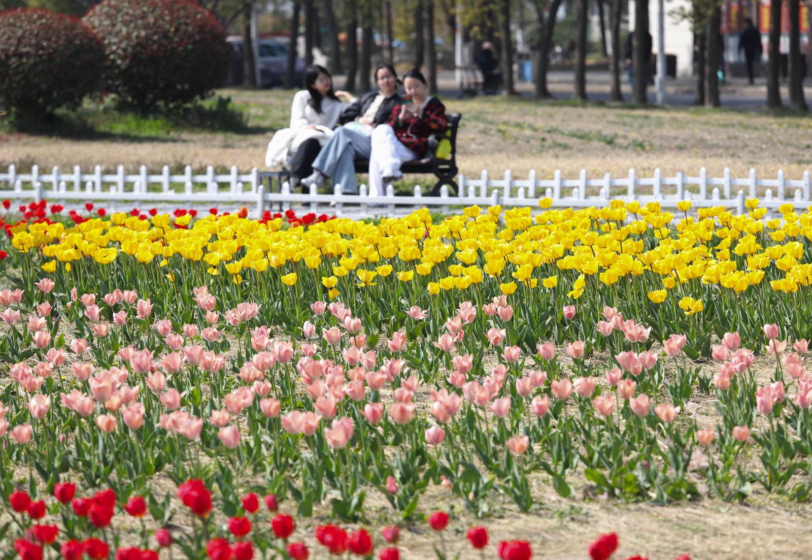 春风有信,花开有期。随着近日气温逐渐回暖,南通大学啬园校区的郁金香迎来了盛放期。近日,记者走进通大校园,花园里的郁金香亭亭玉立,将书香四溢的校园装扮成了一幅流动的油画,引得师生纷纷驻足,记录下这份独属于春天的浪漫。