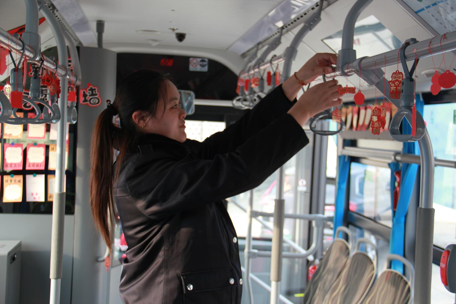 为营造温馨、有温度的出行氛围,南通飞鹤公交将车厢化为“流动驿站”,为女性乘客送上惊喜。600路驾驶员邓红云发挥女性细腻巧思,用心装点车厢:扶手间悬挂着写有“好‘柿’发生”“大‘橘’大利”等谐音祝福的小卡片,寓意美好、趣味十足;她还特别在驾驶室旁设置了一面“愿望征集墙”,邀请女性乘客写下心愿,分享温暖期许。