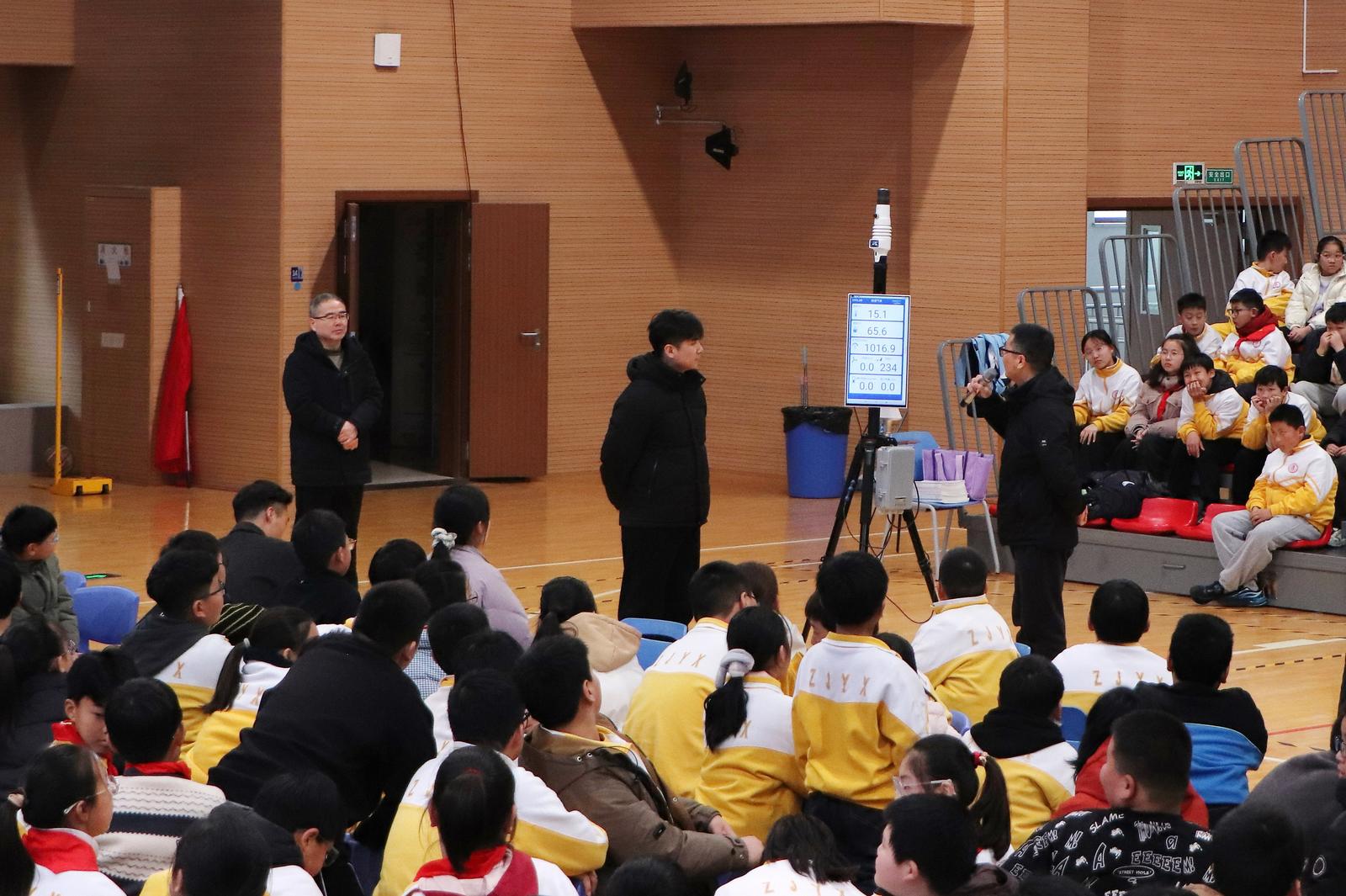 “我们现在用这个模拟弹来演示一下过程,有没有小朋友愿意来帮忙?”“我!我!”在体育馆门口,气象局工作人员现场模拟演示了气象火箭炮的发射方式。同学们纷纷围过来,仔细观察每一个操作步骤,不时提出问题,在零距离互动中了解了人工增雨的技术手段。