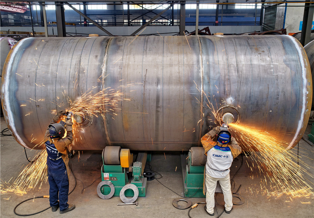 2026年3月18日,工人在位于崇川区港闸经济开发区的南通中集能源装备低温制造一车间忙碌赶制国内外订单产品。目前中集能源装备国内外订单充足,企业开足马力忙生产。