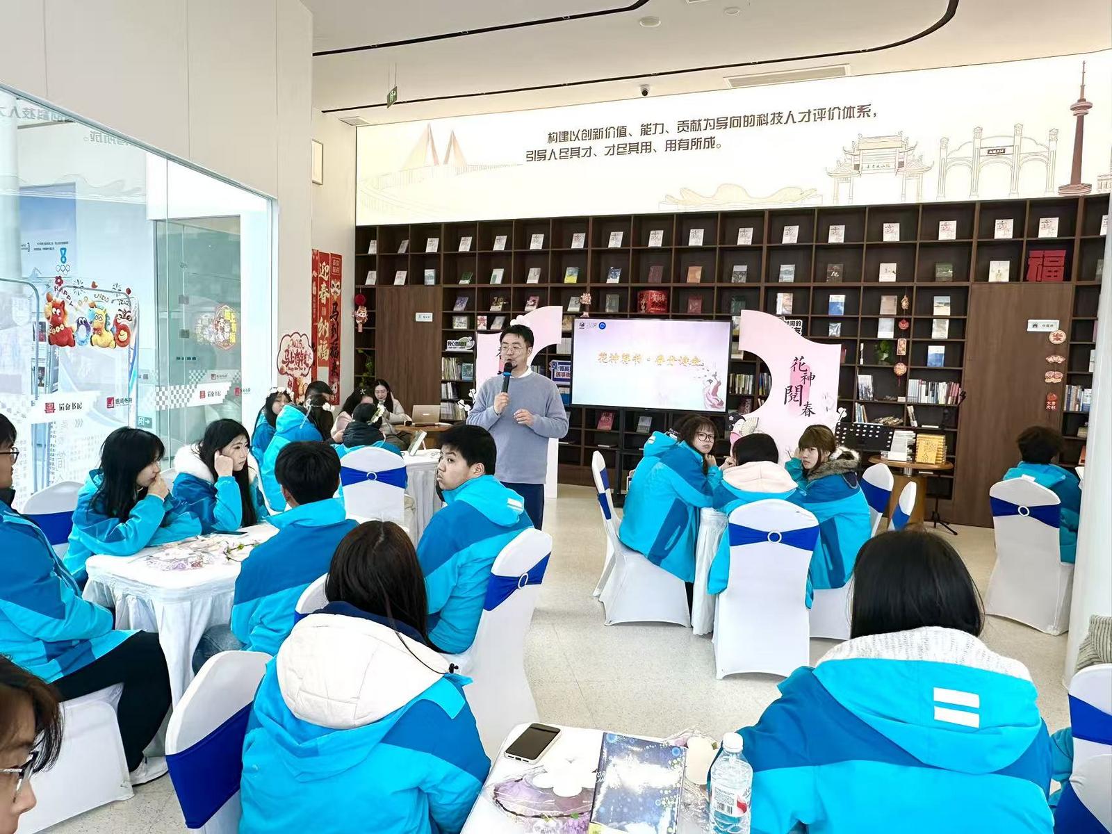 3月19日,崇川区“花神阅春‘杏’会书香”春分节气阅读推广活动在五龙汇人才公园城市书房举行,30名南通市蓝领技工学校学生欢聚一堂,循着春分的踪迹“读”春天。