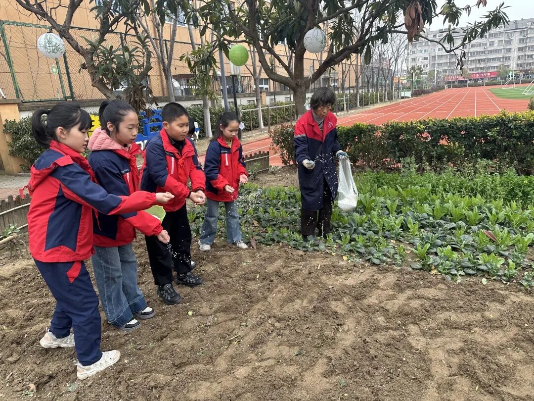 在“大拇指耕读园”,大家合力种下玉米、四季豆、黄瓜的种子,期待藤蔓攀爬、硕果累累的丰收时刻。“一平米小菜园”里,翠绿的生菜、鲜嫩的油麦菜苗在同学们的手中扎根,为校园增添一抹清新的绿意。“一捧药香田”中,芍药、艾草、薄荷等药用植物整齐栽种,同学们在种植过程中初识传统药用植物的魅力,感受中医药文化的底蕴。