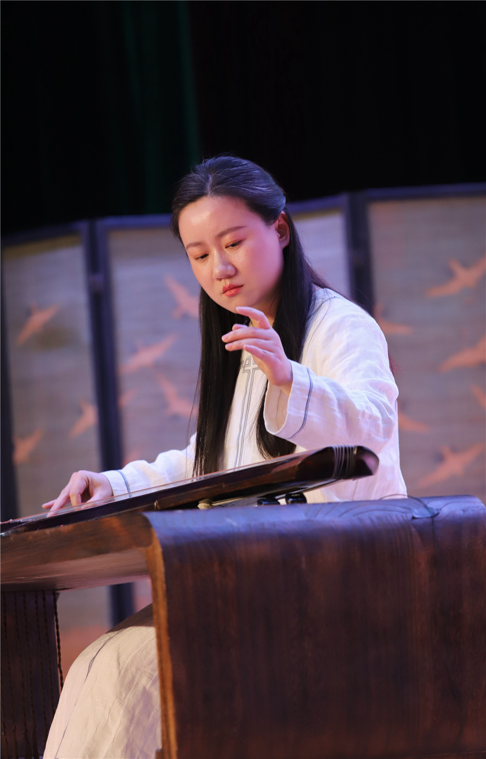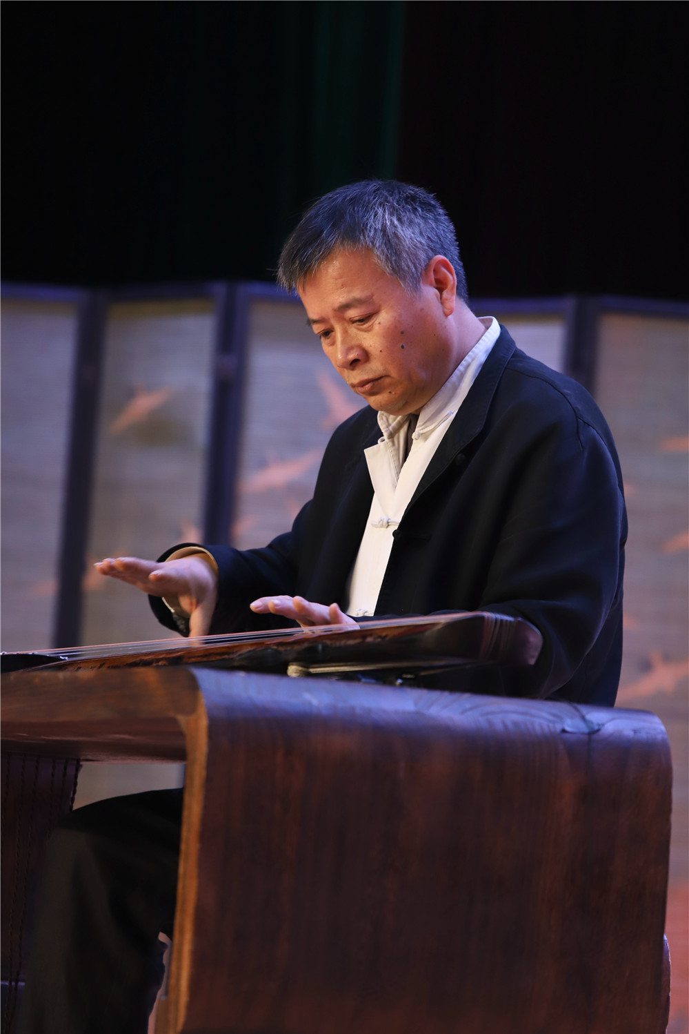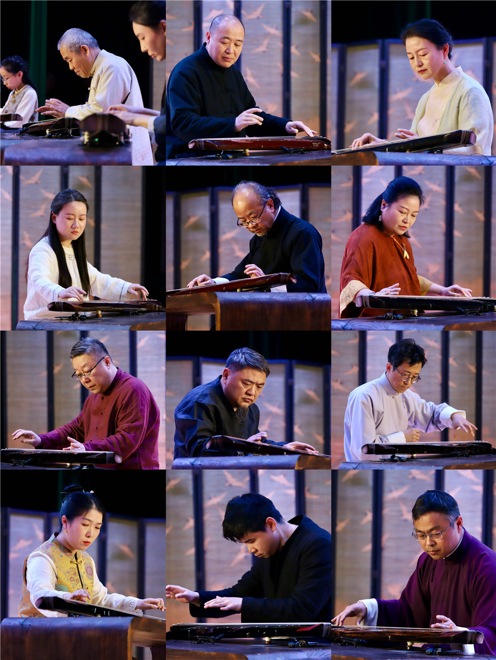 随后,“琴怀江海”长三角古琴社团社长音乐会在二楼剧场奏响,来自无锡、扬州、太仓、苏州吴江、宁波、如东、杭州、昆山、上海松江、济南等地的古琴社团社长或负责人逐一登场。无锡太湖琴社社长潘一东以一曲《忆故人》寄寓深远情思;扬州梓桐琴社负责人程嘉丽带来的《春风》明快舒展,寓意古琴艺术的当代复苏。 太仓娄江琴社社长吴斌、苏州吴江鲈乡琴社社长金雅静、宁波弦镒琴社社长王益、如东古琴协会会长杨晓冬等相继登台,献上了《秋塞吟》《鹤鸣九皋》《鸥鹭忘机》《流水》等经典曲目。