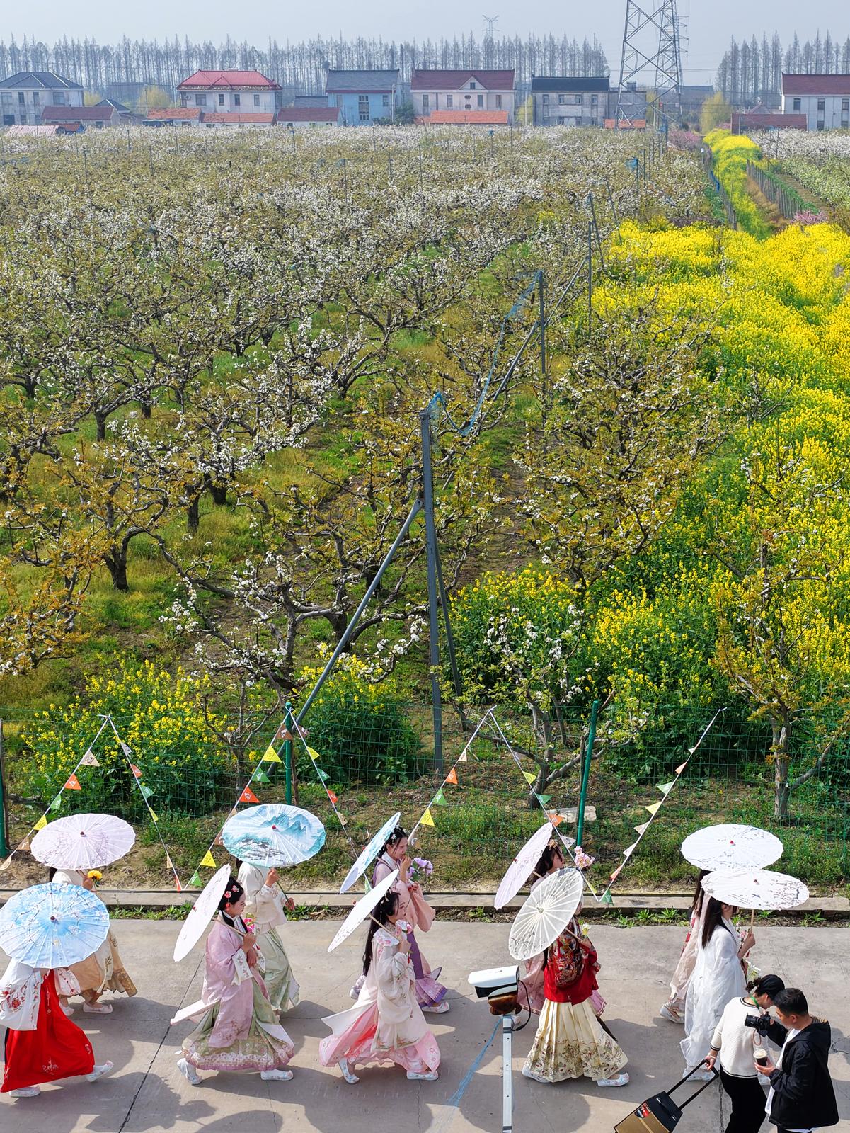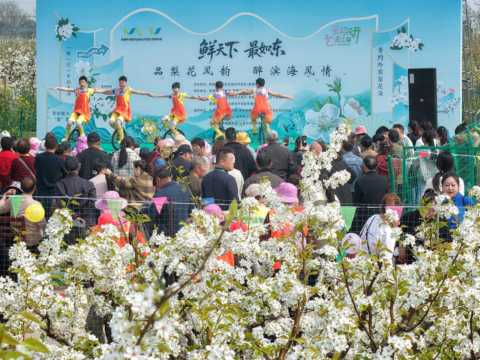 2026年4月6日,如东外农梨花季主题活动在南通外向型农业综合开发区(苴镇街道)东海社区千亩梨园精彩上演,花神巡游、趣味投壶、梨园美食、梨花季农产品展销和丰富多彩的演出,吸引了众多游客畅游梨园,感受春光。