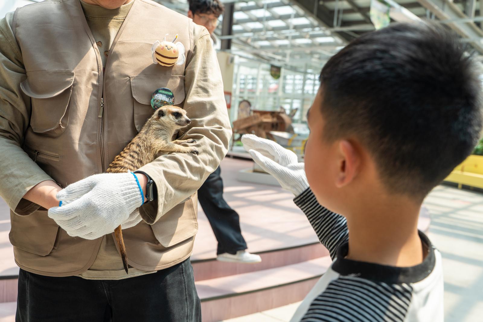 作为本次春假的“人气担当”,公园内的虫宠总动员——活体昆虫与爬宠科普展成为最大亮点。现场展示了数十种罕见的活体昆虫和爬宠,专业讲解员带领孩子们边看边学,从甲虫的铠甲到蜥蜴的伪装,每一处细节都点燃了小朋友对自然的好奇心。