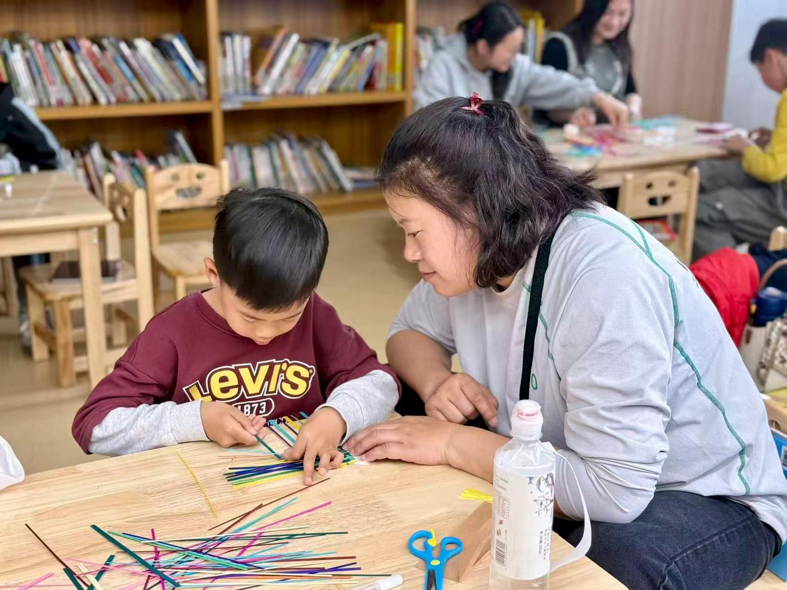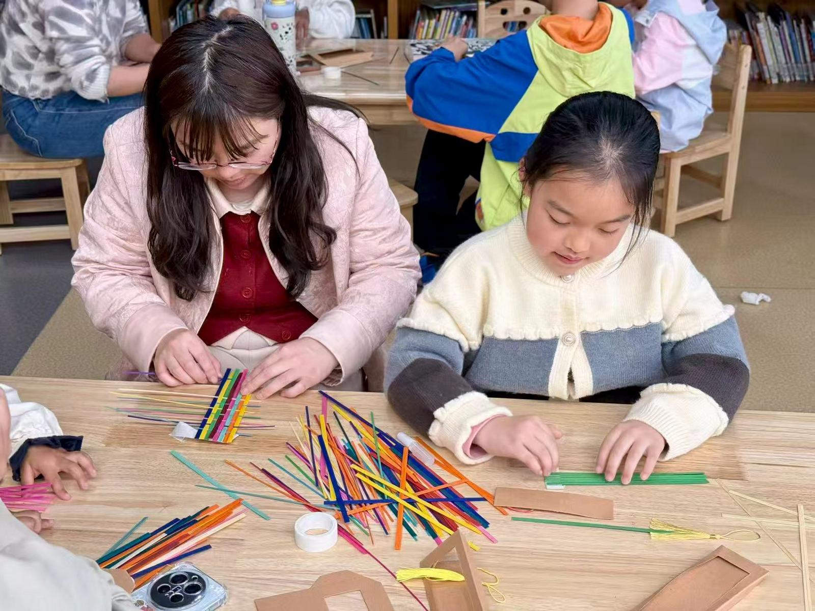 在手工环节,孩子们以彩色竹条为材,穿梭编织,打造出一枚枚精巧的竹编书签。大家将清明文化与竹编技艺相融,在指尖劳作中体悟非遗魅力,以方寸书签承载书香情思,让传统文化以鲜活的方式扎根心田。