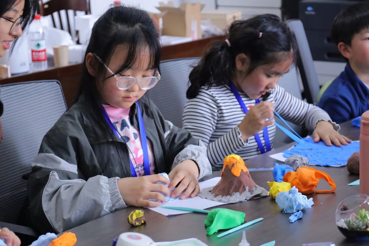 南通大学地理科学学院师生带领中小学生近距离观察各类珍稀矿物与化石标本,用通俗易懂的语言生动解析岩石分类、江苏特色地质地貌等知识,让枯燥的地理知识变得鲜活有趣。在“动手实践板块”,孩子们充分发挥想象力与创造力,亲手铺设砂石、泥土与绿植,打造专属微缩“生态瓶”,在实操中深刻理解生态系统运转、水循环等地理原理;用彩色黏土精心创作中国三级阶梯与五种基本地形模型,用指尖重塑祖国的大好河山。现场穿插的气象基础科普与简易观测实验,结合春季多变的天气特点展开讲解,进一步激发了孩子们探究自然科学的浓厚兴趣。