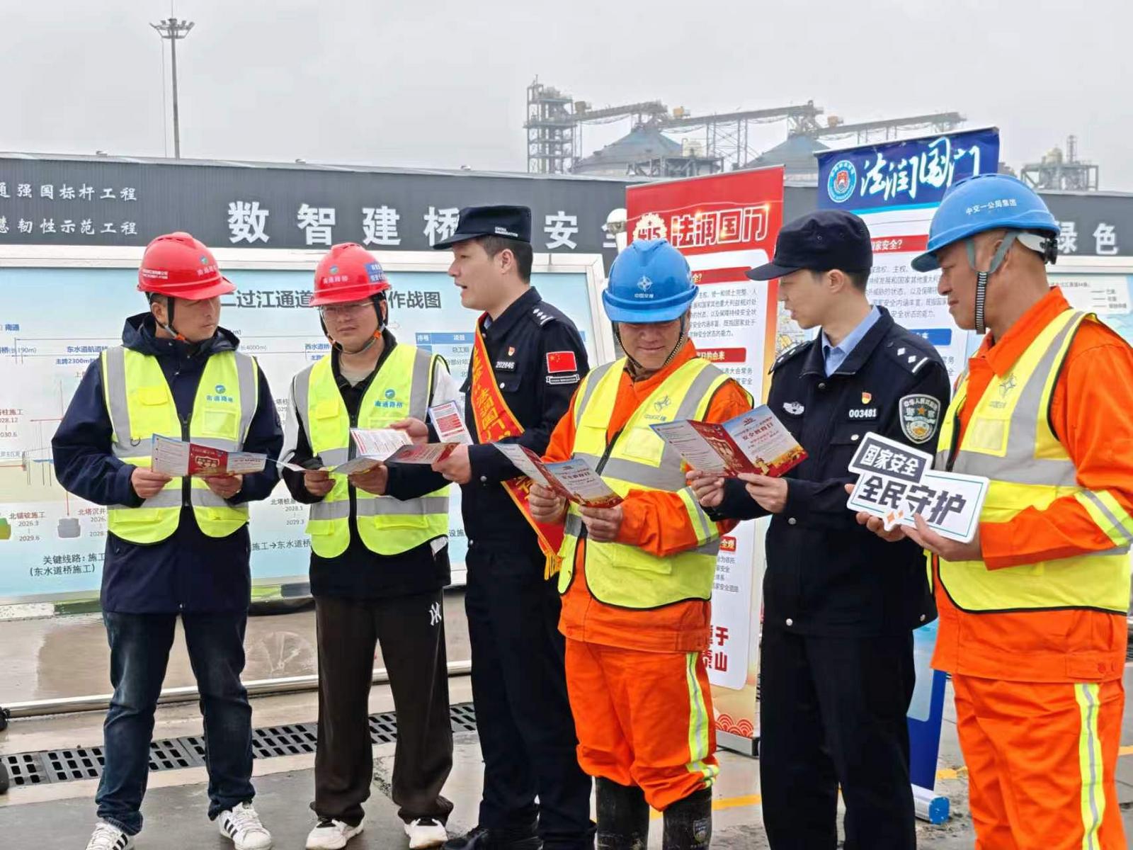 14日,南通边检站联合长航公安南通分局深入口岸一线开展全民国家安全教育日普法宣传活动。