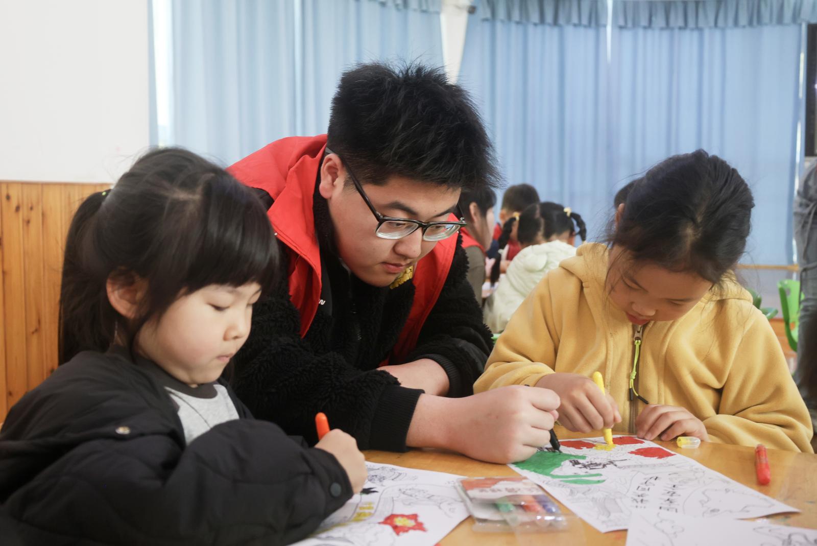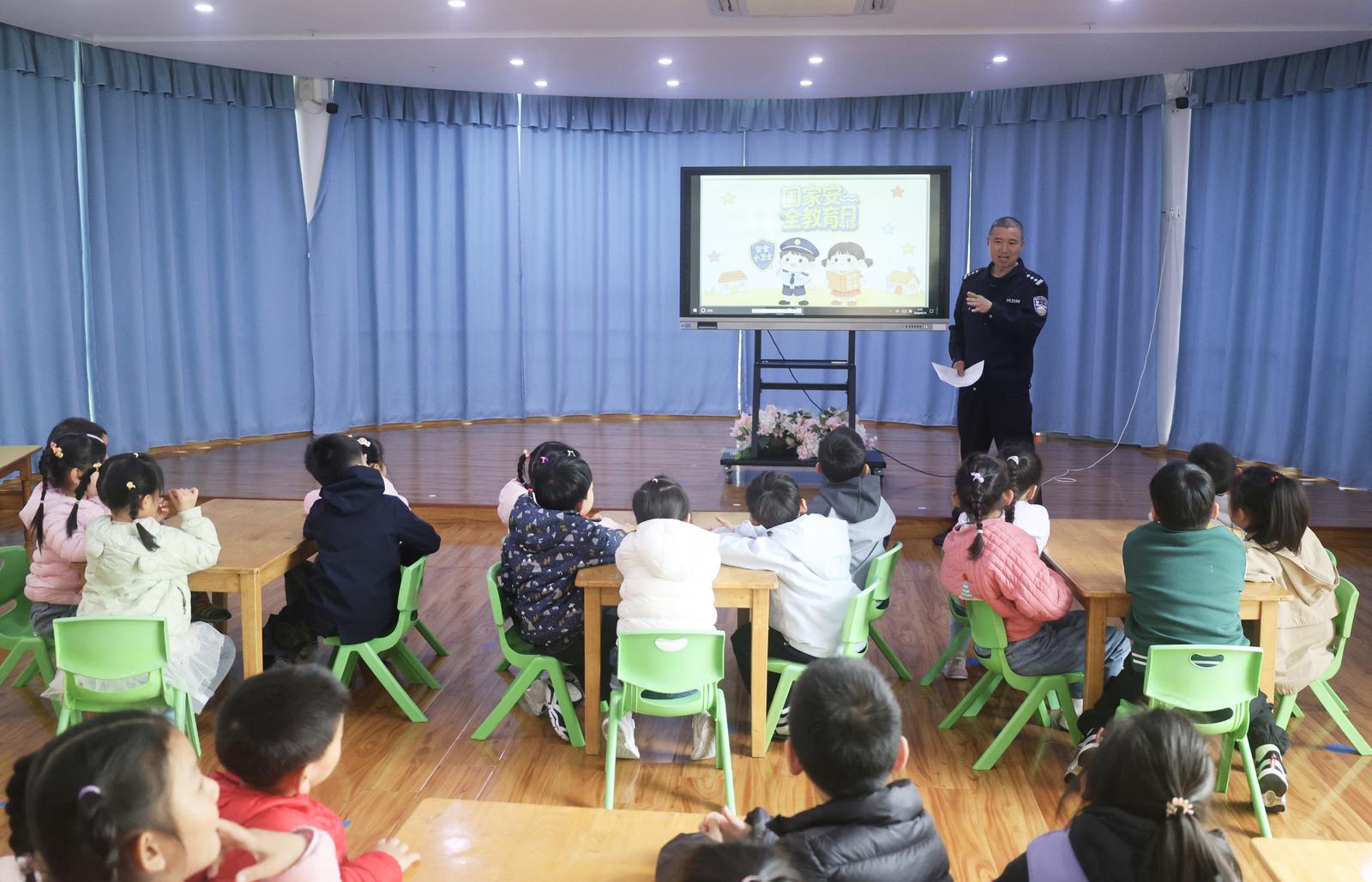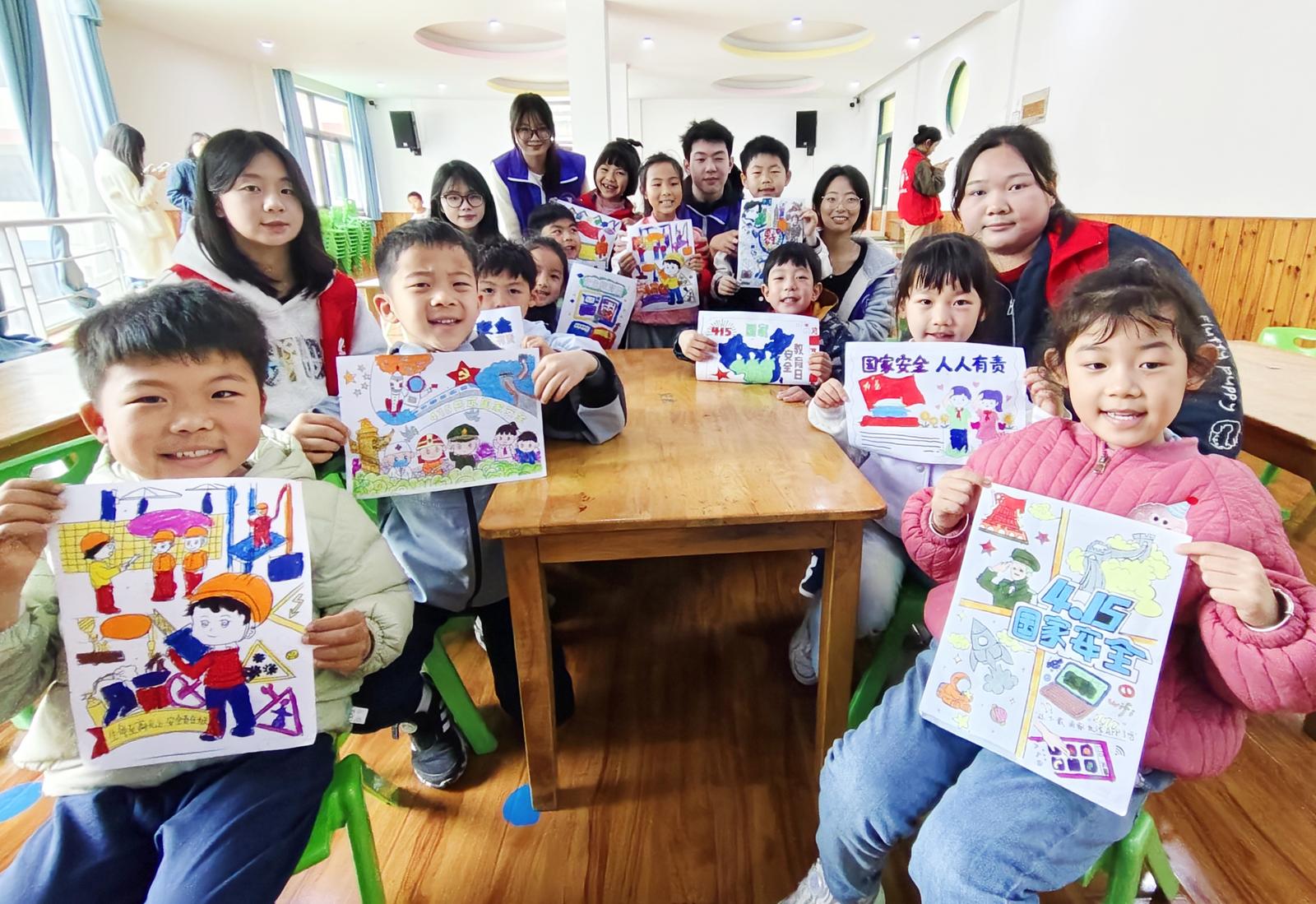活动现场,市公安局崇川分局虹桥派出所民警韩爱华化身专属“安全老师”,他从幼儿日常生活点滴入手,将宏大的国家安全概念,细化为交通安全、防拐防骗、自我防护等身边看得见、学得到的小事,并通过互动问答的方式,引导孩子们主动思考,逐步掌握基本安全常识。随后,来自南通科院食品药品学院的学生志愿者为孩子们带来了一堂生动有趣的食品药品安全科普课。学生志愿者沈阳以一连串充满童趣的提问,搭配图文并茂的ppt课件,带领孩子们认识合格食品、过期食品、安全药品与危险药品,让大家辨别生活中的食品药品安全隐患。当天,南通开放大学启航志愿服务队的学生志愿者准备了以“国家安全”为主题的Q版原创手绘绘本与分镜故事画,以绘本剧的形式进行趣味展演。生动鲜活的画面、诙谐有趣的演绎、温柔生动的旁白,瞬间吸引孩子们的注意力。在学生志愿者的指导下,孩子们纷纷拿起画笔在画纸上开始创作。有的认真描绘守护家园的警察叔叔,有的画出遵守交通规则的小伙伴,还有的画出自己心中的安全小卫士形象……一张张充满童真、创意满满的画作,不仅展现了孩子们天马行空的想象力,更承载着他们对国家安全的朴素理解,以及对祖国、对家园最真挚的热爱。