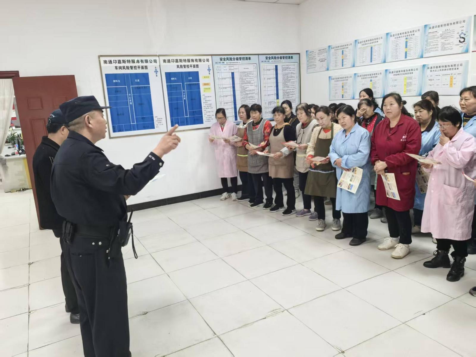 13日,启东市公安局王鲍派出所社区民警和网格交通安全宣讲员来到辖区沪资企业啸凯体育用品有限公司车间,为员工送上交通安全宣防课。这是派出所依托“警网融合”工作机制,深入社区开展多元化交通安全宣传活动的一个剪影。