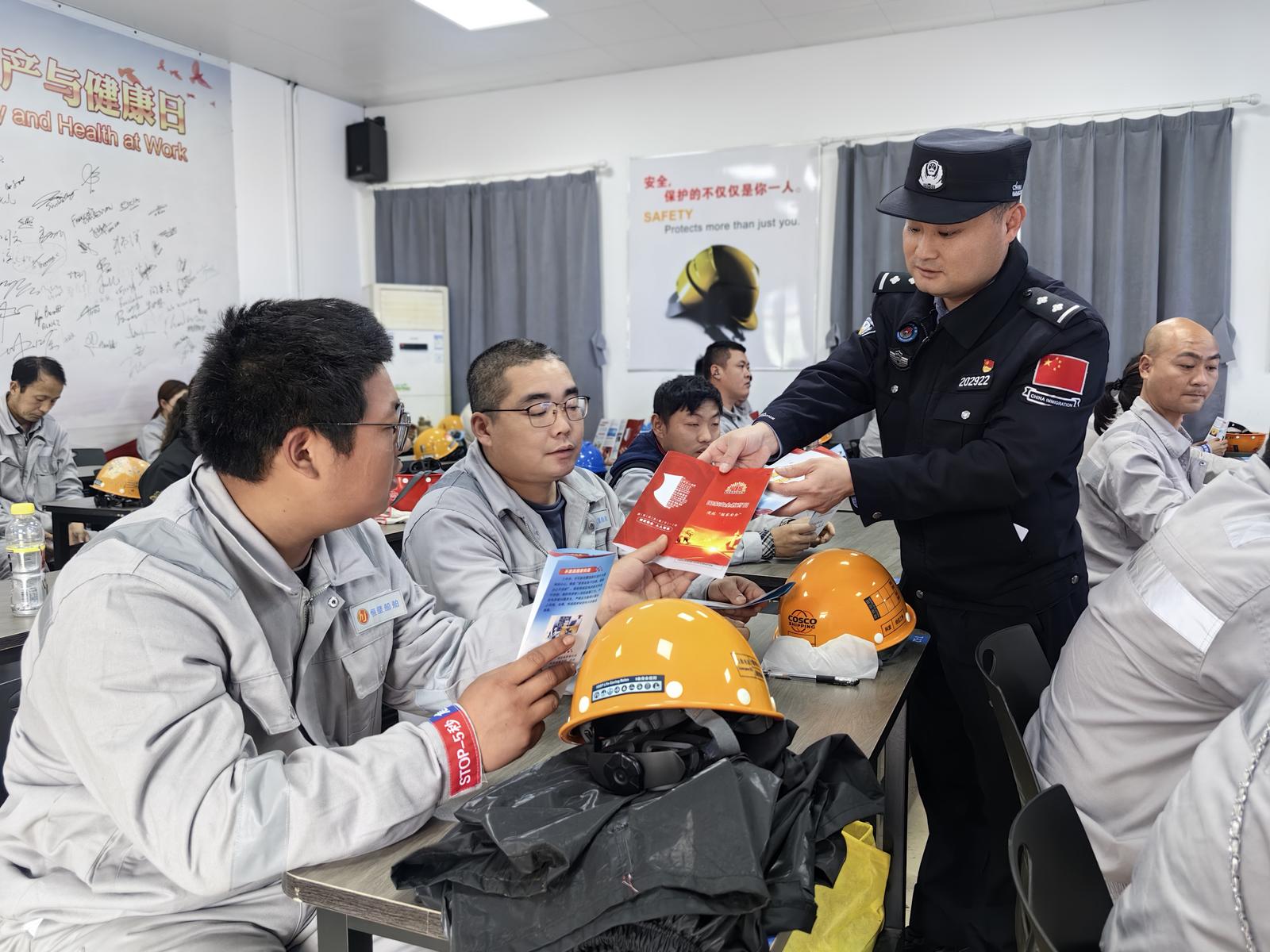 活动期间,该站组织全体民警集中观看国安题材影片《惊蛰无声》,于光影之中厚植家国情怀,强化维护国家安全的责任感与使命感。在码头一线,启东边检站联合驻地政府和法院、司法等部门,走进港区企业开展“法润国门·国家安全”联合普法,面向企业员工详细解读出境入境管理法和国家安全法,围绕反偷渡、反走私等内容开设专题授课,结合典型案例剖析非法出入境等违法行为。同时,民警还深入作业前沿,向船员及码头工人宣讲擅自登陆、无证登轮等作业“红线”,现场发放宣传手册并普及12339国家安全举报电话。活动累计发放宣传资料200余份,解答群众咨询100余人次。
